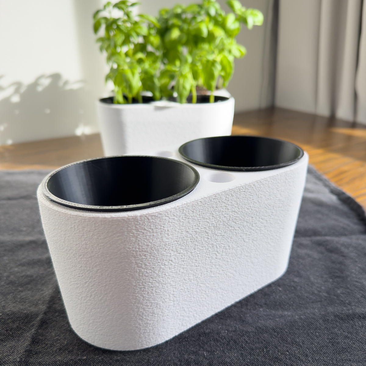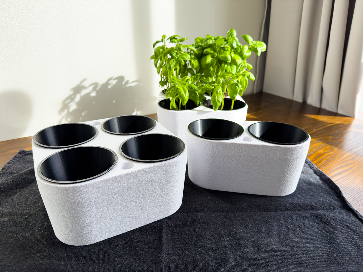 Tyylikäs design ja upea pintastruktuuri sopii kotiin, toimistoon tai puutarhaan. Ruukku on suunniteltu sopimaan Suomessa yleisesti myytävien yrttien n. 100 mm halkaisijaltaan oleville ruukuille, jolloin kaupasta ostetulle basilikalle löytyy heti sopiva paikka. Pienimmät ruukut ja juuripaakut solahtavat nätisti ruukun alaosaan. Irrotettava kansiosa helpottaa puhdistamista ja vedenpinnan ilmaisin kertoo vesimäärän säiliössä.